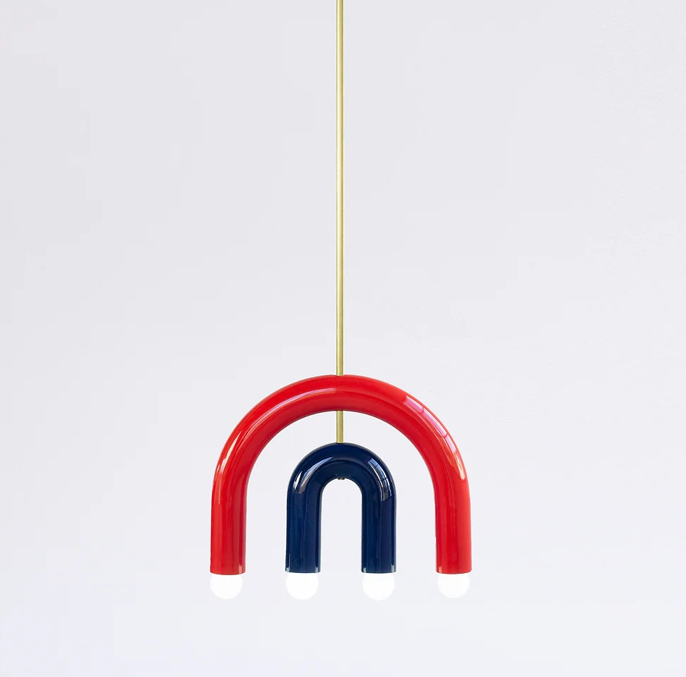The C1 lighting fixture is part of TRN collection. Three dimensional objects inspired by Jan Tarasin painting, have simple calligraphic forms which can play together as if they were letters from a non-existent alphabet. The hand crafted process of glazing ceramics gives the collection a truly unique character. It is finished with brass elements.